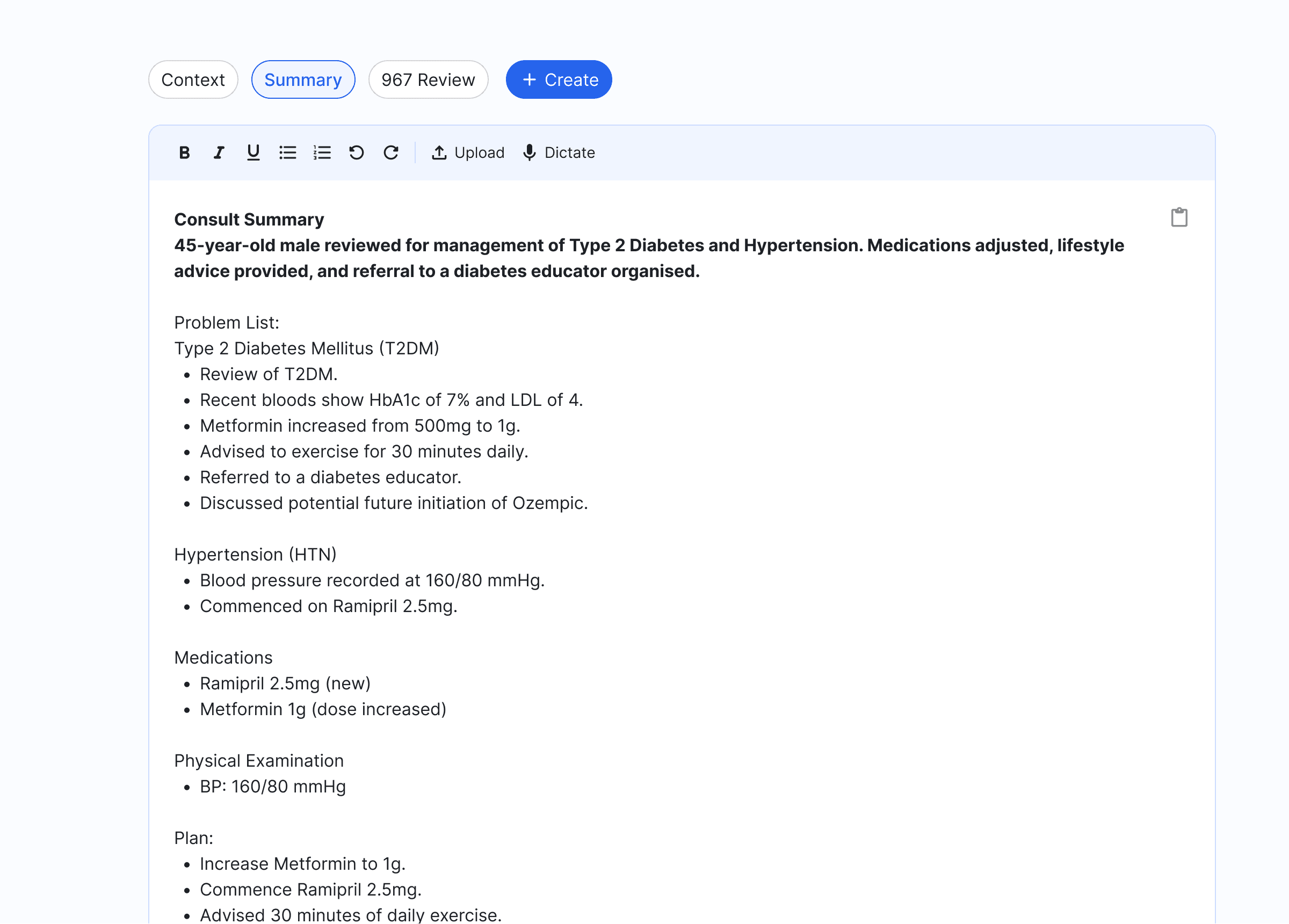 Designed for the complexity of general practice, our AI understands intricate medical language, medications, and chronic disease patterns to ensure reliable documentation.